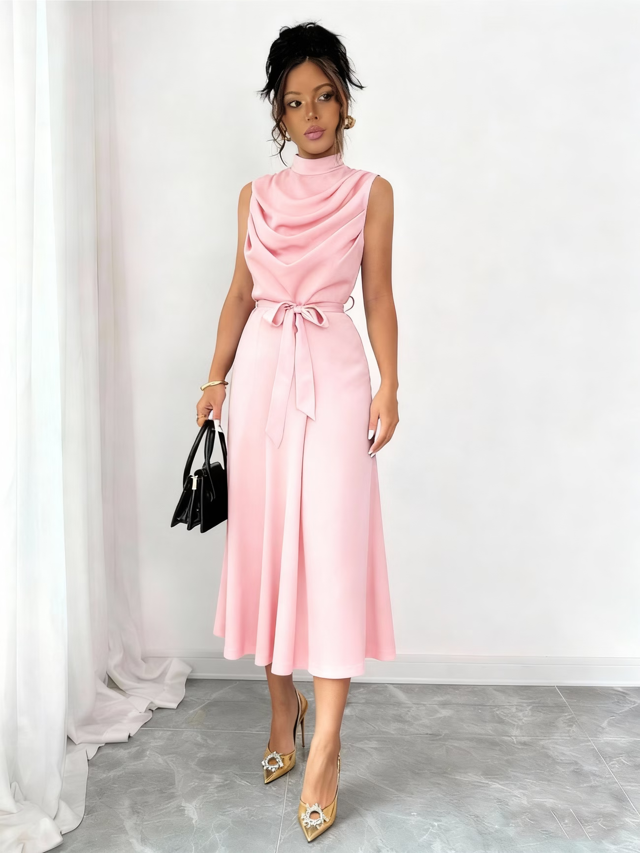 An Elegant And Stylish Sleeveless Dress for Women, Featuring a Casual Belt Design