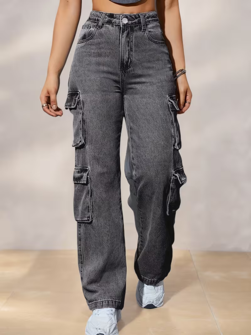 Women’s High-Waisted Wide-Leg Jeans, Boyfriend-Style Loose Cargo Pants, Casual Jeans with Pockets, Women’s Denim Pants And Clothing